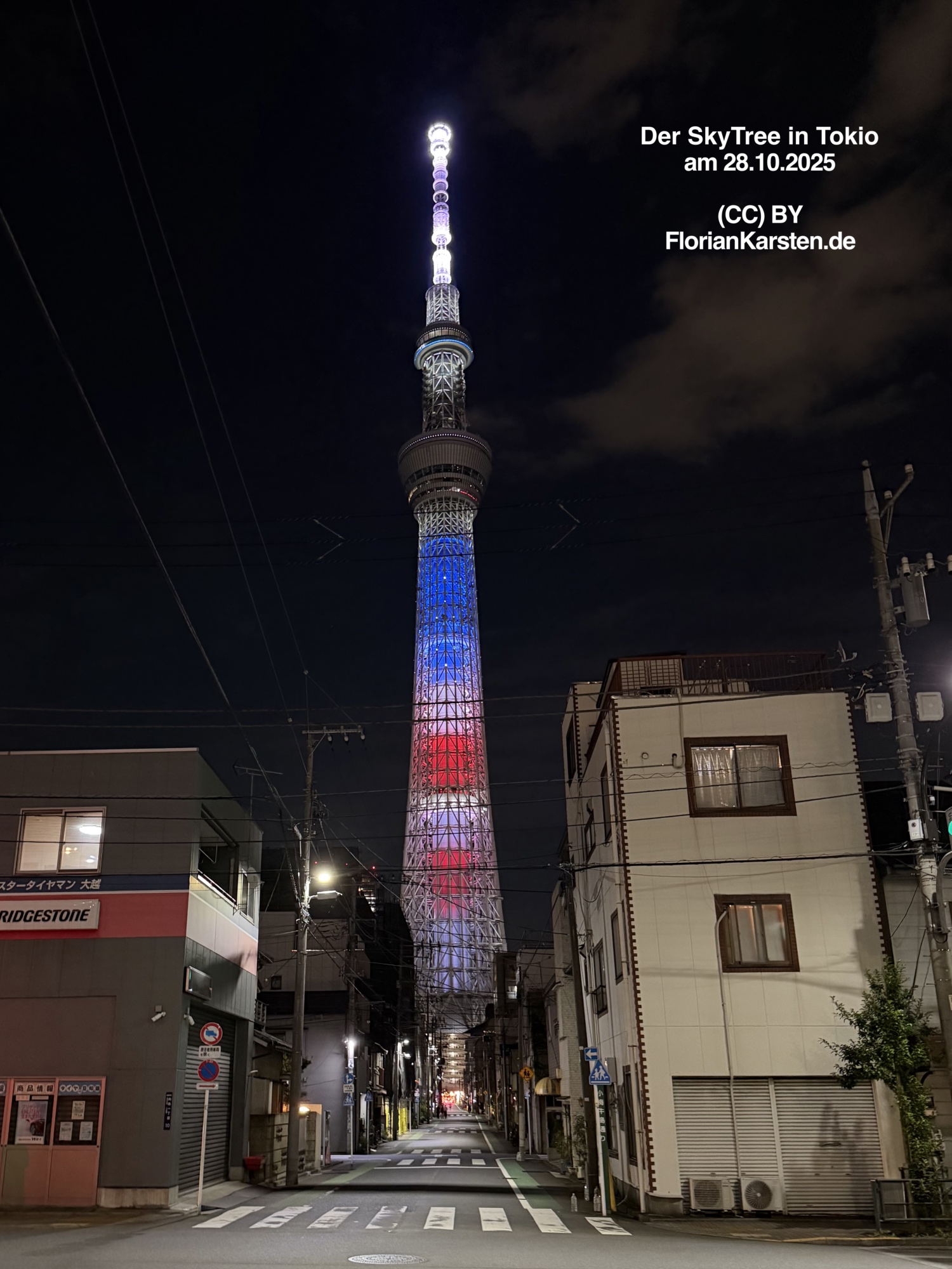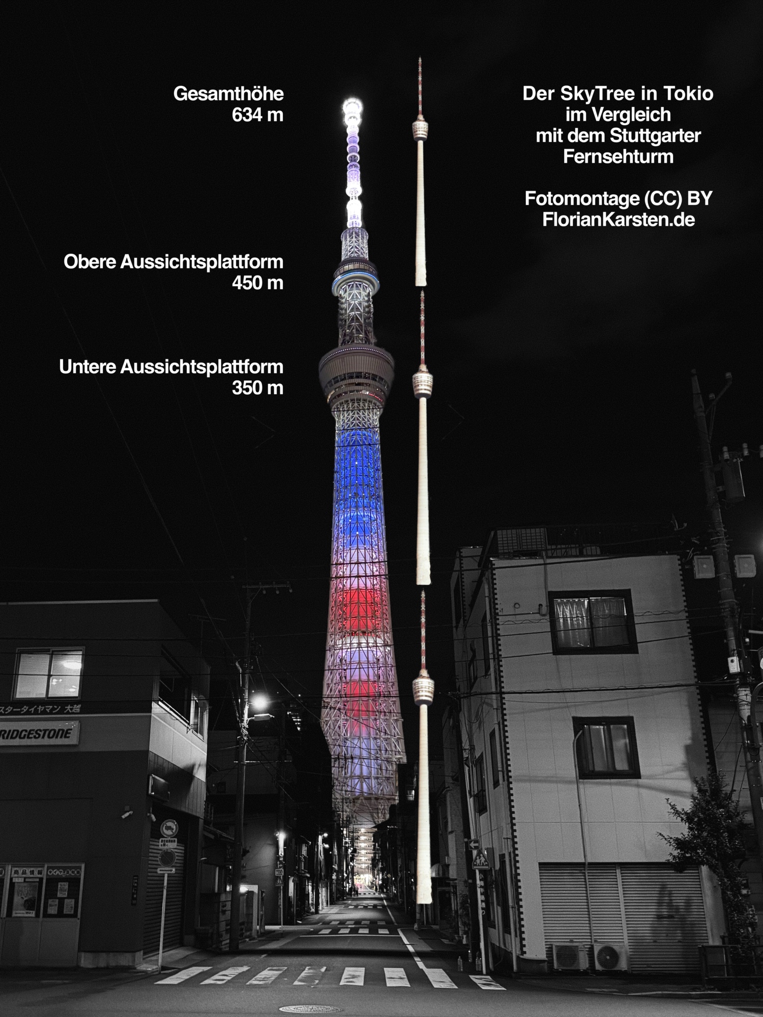 N.B. Die besondere Beleuchtung des Turmes hängt mit dem Besuch des US-amerikanischen Präsidenten in Tokio am Tag der Messung bzw. des Fotos zusammen.
