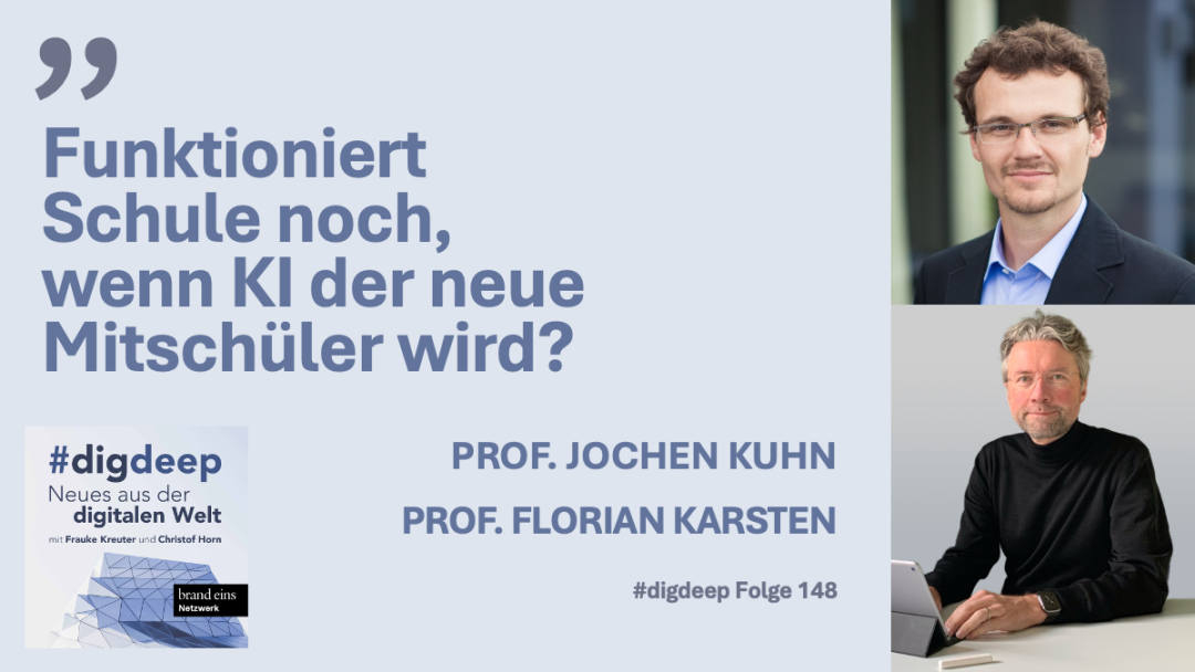 Herzlich Willkommen!Neu: Podcast: Funktioniert Schule noch, wenn KI der neue Mitschüler wird?Frauke Kreuter und Christof Horn haben Jochen Kuhn und mich in ihren Podcast #digdeep eingeladen, um über KI in Schule und Bildung zu erzählen: "In der Schule lernen wir für’s Leben. Doch was passiert, wenn wir das Lernen an die KI auslagern? Die Kinder unserer Generation wachsen nicht nur mit dem Internet und Google als unendlichem Wissensspeicher auf: Sie sind die erste Generation, in der KI und Chatbots übermenschliche Fähigkeiten jederzeit und überall zur Verfügung stellen. Sie können Lernpartner sein, die den Unterrichtsstoff nochmals erklären. Sie können aber auch sämtliche Schulaufgaben mal kurz im Handstreich erledigen. Lagern wir nun also auch das Denken aus? Und wie kann das bisherige Konzept der Vermittlung von Wissen und Fähigkeiten noch funktionieren, wenn immer mehr verschwimmt, was vom Menschen und was aus der Maschine kommt? Das Thema Schule lässt nun wirklich niemanden kalt. Jeder hat sie durchlaufen, manche viele sie mit ihren Kindern erneut mit, und manche kehren sogar wieder an die Schule zurück. Unsere heutigen Studio-Gäste Prof. Florian Karsten und Prof. Jochen Kuhn sind Profis, was Bildung angeht: Sie forschen zum Thema Bildung und bilden die zukünftigen Lehrer aus. In unserem Gespräch werden zwei Dinge schnell klar: KI ist weder aus dem Lehrerzimmer noch aus dem Kinderzimmer noch wegzudenken. Und: Wir haben viel mehr Fragen als Antworten. Zeit also für eine erste Bestandsaufnahme, uns mit diesem „Neuland KI“ im Bildungssystem auseinanderzusetzen. Fortsetzung folgt…"